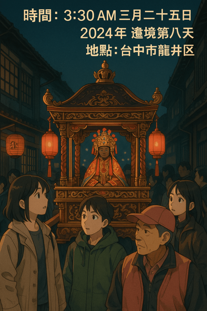 信眾駐足,百感交集。蓋山邊媽祖,自清代以來護境照民,與白沙屯媽祖同轎共渡香路,兩百年情誼,神人共仰。今神意垂顧此地,實為萬世之光榮,黎民之福音。